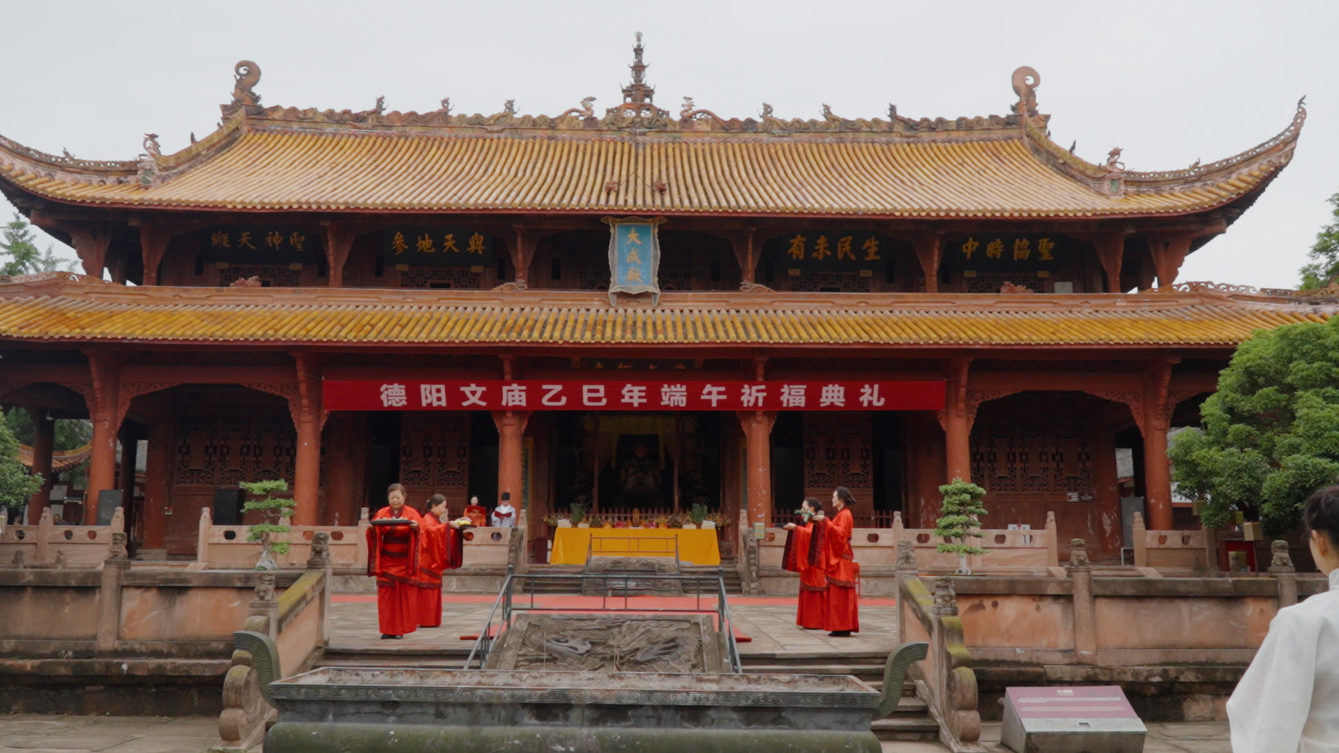 端午节当天,德阳文庙举行了庄重的祈福礼,现场氛围肃穆而庄重,参与者身着传统服饰,表达对先贤的追思与对美好生活的祈愿。