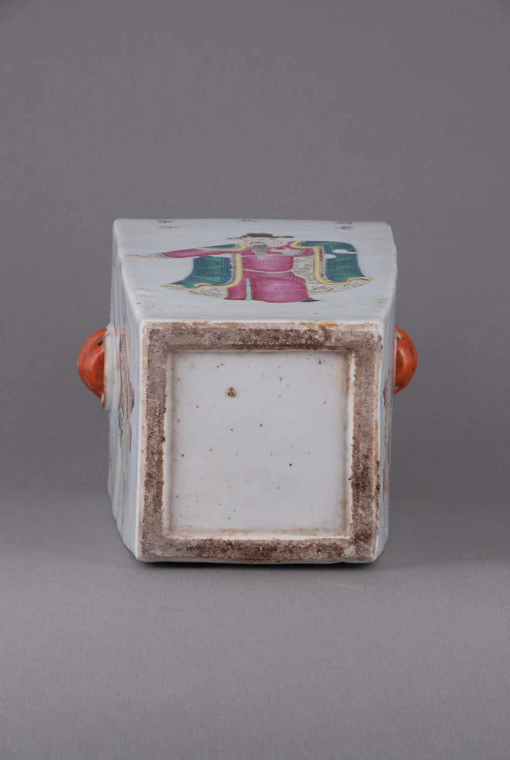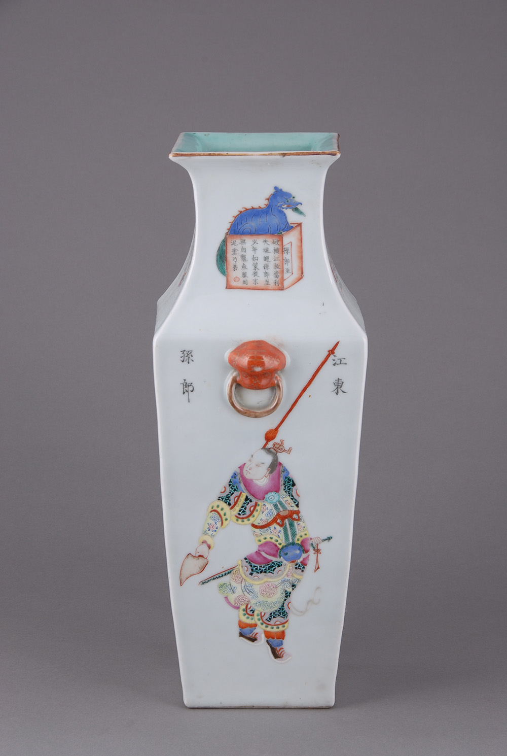 清四方形人物瓷瓶,