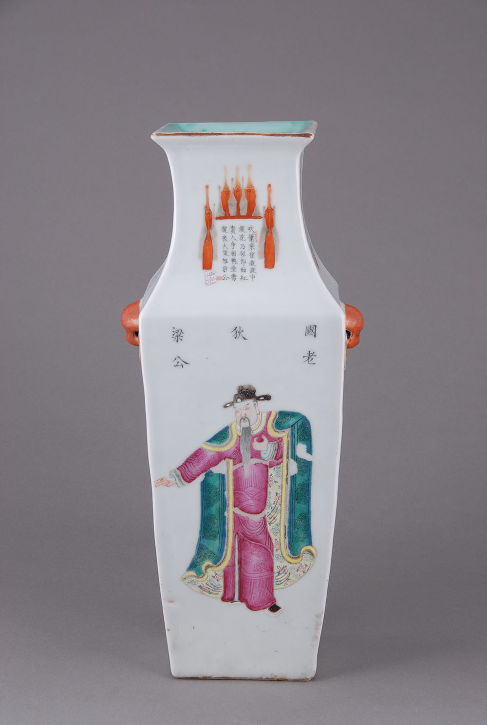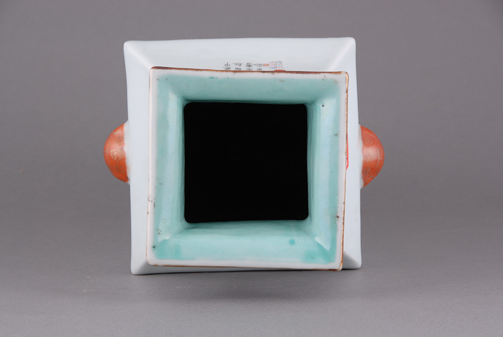 清四方形人物瓷瓶